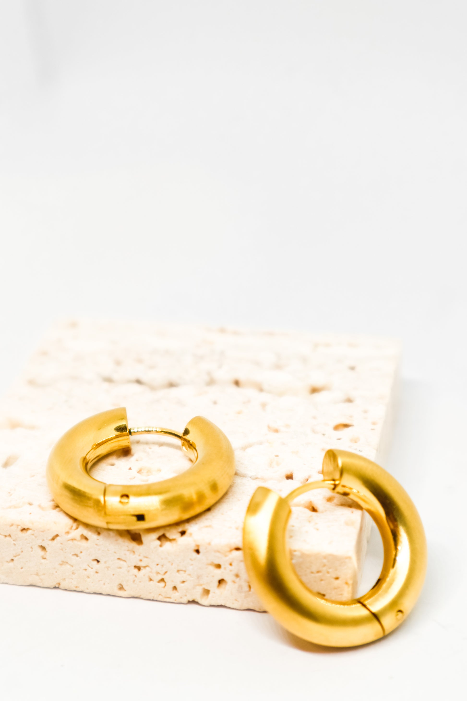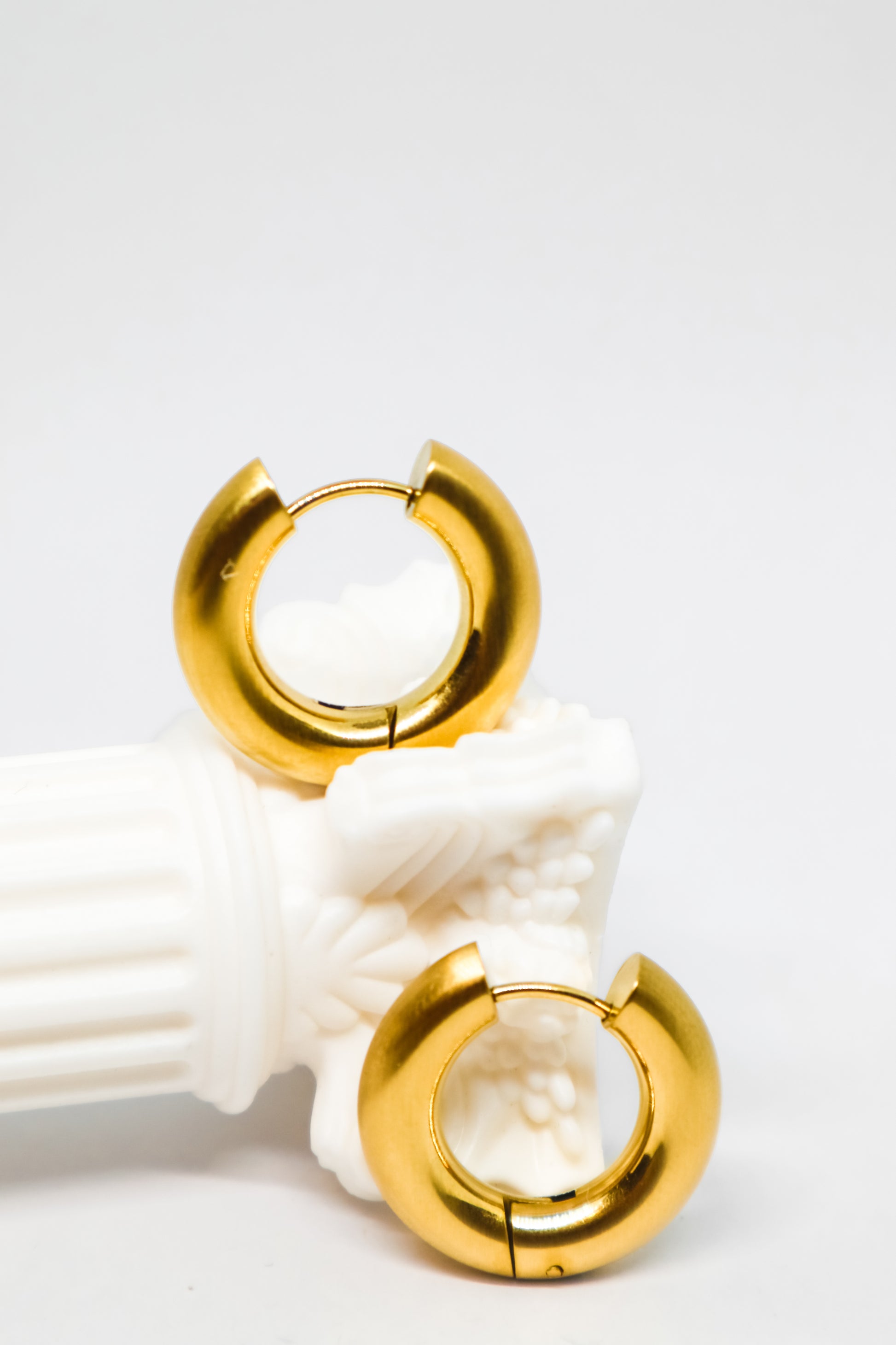 Argolas douradas clássicas — brilho uniforme e design atemporal.